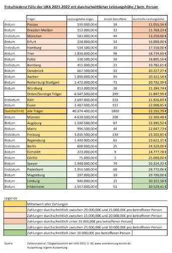 Um wenigstens über die Höhe der "gewährten" Leistungen einen ersten Überblick zu gewinnen und so eine Grundlage für erste Schritte zu einer von Betroffenen herzustellenden Transparenz zu erarbeiten, hat eine Gruppe von Betroffenen ein Formular erstellt, mit dem Angaben über die "gewährten" Leistungen in Anerkennung des Leids erfasst werden können.